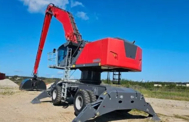 Fuchs MHL380/390F – год выпуска 2023, наработка 400 часов, подъемная кабина, цельнолитые колеса, стрела изогнутая 22м, пилон 1м. Три грейфера, 2-х челюстные 6м3 и 2,7м3, 5-ти лепестковый 1м3. Цена в РФ 140 млн. рублей, включая НДС и ПСМ.