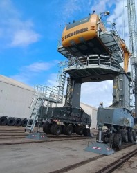Liebherr LH150 – год выпуска 2024, наработка 180 часов, подъемная кабина, пилон высотой 6,7м и шириной 4,2м, стрела изогнутая 16,5м и рукоять 16м, радиус 33м, крюк, грейфер 8м3. Цена в РФ 390 млн. рублей, включая НДС и ПСМ.