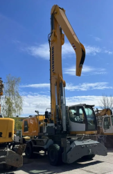 Liebherr LH40 – год выпуска 2024, новый, 8 часов, подъемная кабина, цельнолитые колеса, стрела 16м. Цена в РФ 68 млн. рублей, включая НДС и ПСМ.